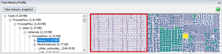 If you have taken a memory snapshot, this view will draw a visual representation of the memory used by each node in the tree. Bigger and brighter boxes represent nodes that used more memory.
