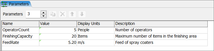 Model Parameter Tables are accessed from the Toolbox. For more information on how to use parameters, see the Model Parameters topic.