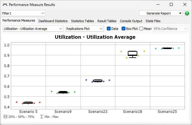 Check this box to show the box plot of the Performance Measure's values for each Scenario on the chart.