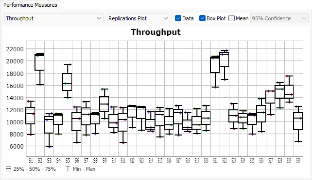 The Performance Measures Tab displays the data for a Performance Measure across all replications. It has the following properties: