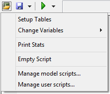 Saved scripts can be loaded by pressing thebutton. A menu will appear with a list of all Model Scripts, separated by a line, and then all your User Scripts.