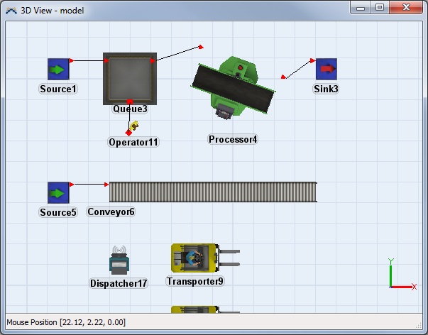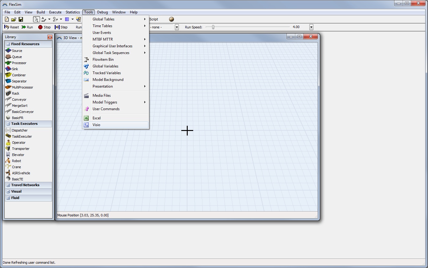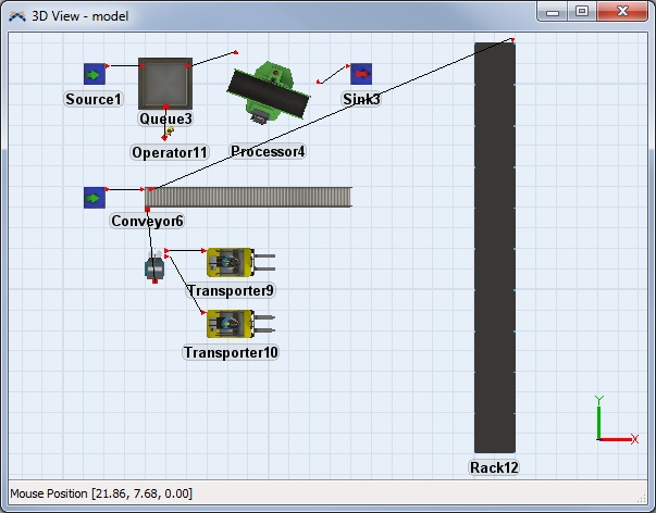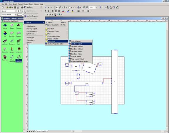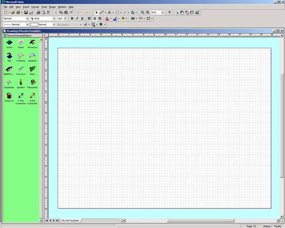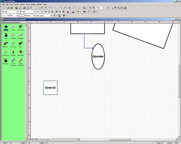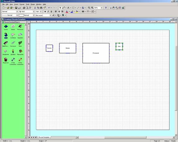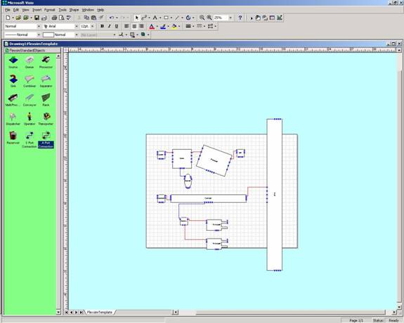 The Visio import tool allows you to build models in Microsoft Visio™ and import them into FlexSim.