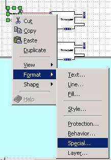 S port connections (center ports) are created in the same way as A port connections. The connection point in Visio that they are connected to does not make a difference in their order. Connecting S port connections to the blue connection points on the left and right is acceptable.