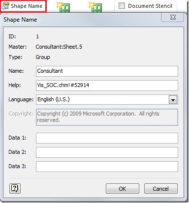 In Visio 2010 this dialog box has been renamed "Shape Name" as seen in the picture below: