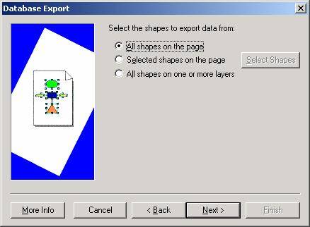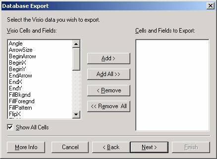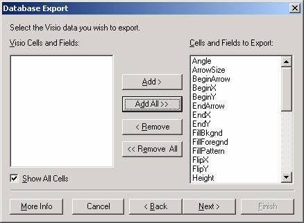 Go to the Tools, then Macros, then Visio Extras, then Database Export to export the file.