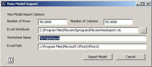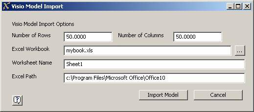Enter a number into Number of Rows and Number of Columns that is larger than the number of rows and columns in the excel sheet that was just created by Visio Database Export. 50 is usually large enough. If your model does not import correctly, you may need to increase these values after checking your excel sheet to see how large it is.