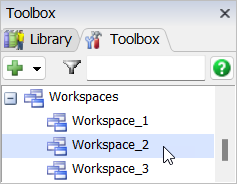 clicking on the button, as well as in the Toolbox. You can also open a workspace