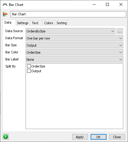 - Click on the Data Source field and select the OrdersBySize collector from the options.