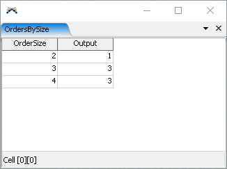 Now if you right-click on the OrdersBySize collector in the Toolbox and select the View Table option you can see the table for the collector. You should be able to now see the table populate with the data on output based on order size. You may have to speed up the model runtime to see the changes.