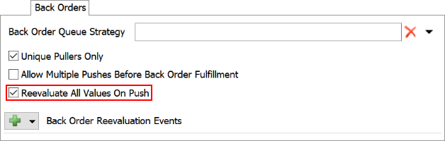 - In the Back Orders tab, check the Reevaluate All Values On Push checkbox.