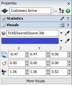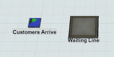 | Customers Arrive (Source) | Most 3D models begin with a source object that creates the flow items that will