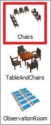- In the Library under the Healthcare group, click the MultiLocation object to open a menu of multi-location objects. Drag the Chairs object into the model.