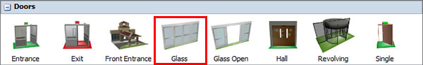 to 180) - In the Library under the Healthcare group, click the Prop object to open a menu of prop objects. Drag a Glass door (under the Doors group) into the 3D model.