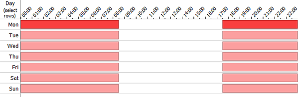 6. Click the first box and press Ctrl+C to copy all the boxes. Move your cursor closer to the right on the Monday row and press Ctrl+V to paste the box. Resize the copied box so that it covers 17:30 to 24:00.