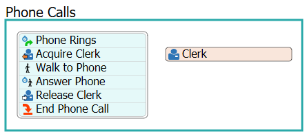 In this step, you'll add the logic for the process flow you created in the previous step. You'll create the logic that will randomly generate phone calls and then instruct the clerk to answer those calls.