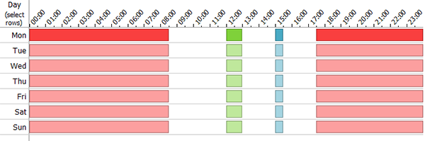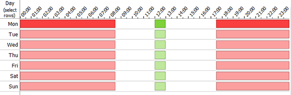 7. Click inside the Monday row near the 12:00 time slot and drag the cursor to the right, releasing it at 13:00.