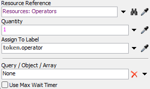 | Acquire Operator | This activity will attempt to get one of the operators. When an operator is available, the transport tasks will be assigned to that operator. If an operator isn't available, the token will wait at this activity until one becomes available. You'll create a label called operator on the token to track which operator has been assigned to these tasks. |