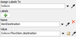 - Dynamically set flow item destinations - A label named destination on the flow item will track which processor the flow item should be transported to. The process flow will copy the value of this label to a matching label on a token called itemDestination and use this in the transportation task sequence.