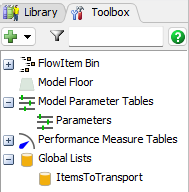 - Confirm that the ItemsToTransport list shows up in the Toolbox under the Global Lists group.