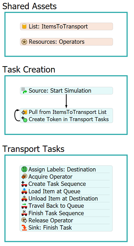 - The Transport Tasks section will contain the basic loading and unloading task sequence.
