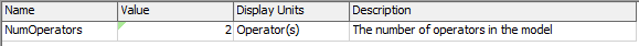 - There should already be a default parameter. In the name column, change the cell to say NumOperators.