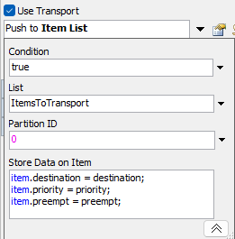 - Click the arrow next to the box beneath the Use Transport checkbox to open a menu. Point to Use List, then select Push to Item List (No Task Sequence) to open some picklist options.
