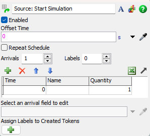| Source: Start Simulation | This Scheduled Source activity will create one token as soon as the simulation starts and sends the token to the Pull From List activity. After it creates this token, it won't create any additional tokens. The one token will simply loop continuously through the other two activities until the simulation ends. |