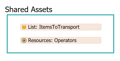 | List | Allows you to push or pull tokens, flow items, task executers, numbers, strings, etc. to a list. This is a useful asset for syncing multiple tokens within a process flow or as a more dynamic resource. Process flows can use a list that is local to the process flow itself or could be tied to a Global List in the simulation model. |
