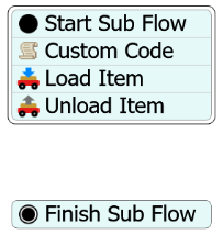 Finish Sub Flow activities as well. - From the Library, under the Basic group, drag a Custom Code activity after the Start Sub Flow activity to make a stacked block.