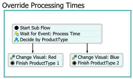 | Decide by ProductType | This activity will evaluate the productType label and send tokens with a productType of 1 to the first Change Visual activity and those with a producType of 2 to the second Change Visual activity. |