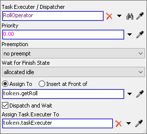 - Click the arrow next to the Executer / Task Sequence box to open a menu. Point to Token Label, then select getRoll.