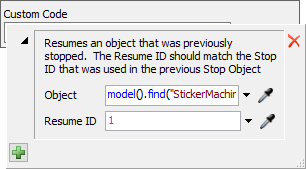 | Custom Code: Resume Machine | This activity that will restart the sticker machine after the RollOperator installs a new roll of stickers on the machine. |