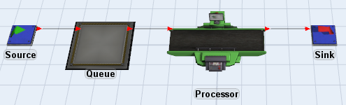 - Next, add an additional Queue which will act as a storage area for the sticker rolls. Place the Queue a short distance from the Processor in the model.