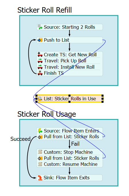 3. Repeat the previous steps for the two Pull from List activities in the Sticker Roll Usage process flow.