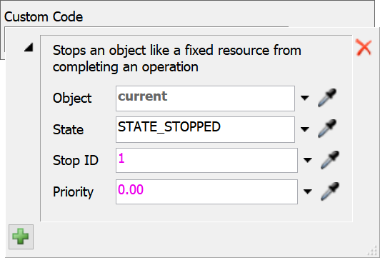 8. Click the second stacked block in the Sticker Roll Usage process flow to select it. In Properties under Custom: Stop Machine: