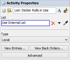 • Click List: Sticker Rolls in Use to link it to the Push to List activity.