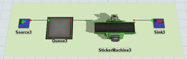 • In the 3D model, click StickerMachine3 to attach it to this process flow.