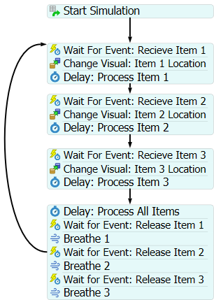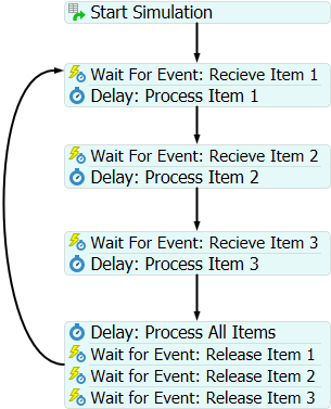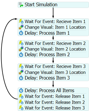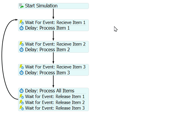 - Create a connector that loops from the end of the Wait for Event: Release Item 3 activity to the Wait for Event: Receive Item 1 activity.