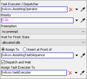 token.AssistingOperator. - Click the Create Assisting Task Sequence activity to select it. In Properties, click the arrow next to the Executer / Task Sequence box to open a menu. Point to Token Label and select AssistingOperator.