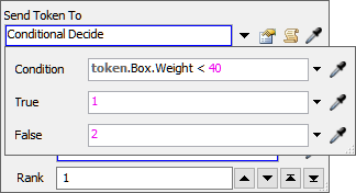 50.00. - Click the Decide: Standard or Heavy? activity to select it. In Properties, click the arrow next to the Send Token To box to open a menu. Select Conditional Decide.