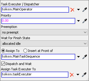 token.MainOperator. - Click the Create Main Task Sequence activity to select it. In Properties, click the arrow next to the Executer / Task Sequence box to open a menu. Point to Token Label and select MainOperator.