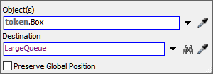 - Click the Move Object: To LargeQueue activity to select it. In Properties, click the arrow next to the Object(s) box to open a menu. Point to Token Label, then select Box.