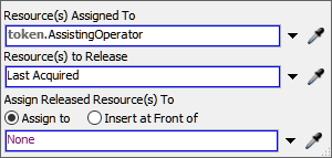 - Click the Release: Assisting Operator activity to select it. In Properties, click the arrow next to the Resource(s) Assigned To box to open a menu. Point to Token Label and select AssistingOperator.