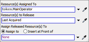 - Click the Release: Main Operator activity to select it. In Properties, click the arrow next to the Resource(s) Assigned To box to open a menu. Point to Token Label and select MainOperator.