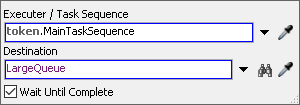 - Click the Load Box at LargeQueue activity to select it. In Properties, click the arrow next to the Executer / Task Sequence box to open a menu. Point to Token Label and select MainTaskSequence.