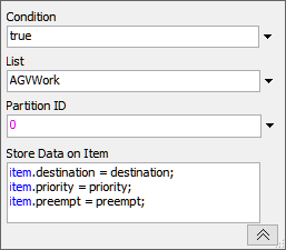 Although lists require a little more thought to set up correctly, lists are sometimes better for item routing in an AGV model because they don't require making port connections over potentially long distances. Lists can also simplify what many-to-many port routings for models with many different origin points and many different destination points.