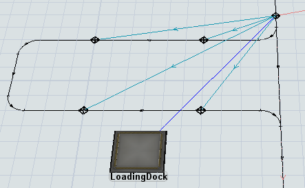 In order for the process flow to work correctly, you'll also need to create a Next Work Point loop. A Next Work Point loop is basically a series of control points that are connected to each other in a loop. Once this circuit has been set up, the AGVs in the system will loop continuously through the network looking for transportation tasks to work on. You'll set up the Next Work Point system in the main AGV network in this step.