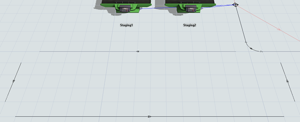20. Create a port connection (A-connect) from the AGVEntryPoint control point to the ParkPoint1 control point to open a menu. Select ParkPoints. A dark green line will appear showing the second AGV is connected.