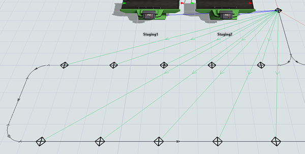 10. If the two AGVs are currently hovering over the AGVEntryPoint control point, drag those away from the control point so the control point is visible.