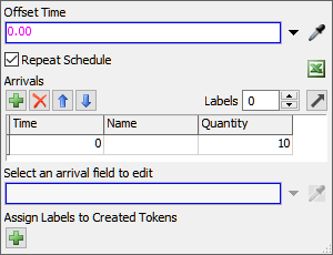 11. Click the Source: MedSupplies Deliveries activity to select it. In Properties, under the Arrivals group, find the cell on the first row under the Quantity column. Type 10 in this cell.